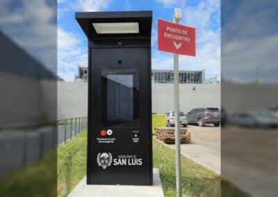 También posee parlantes, cámara de alta resolución y cámara panorámica, micrófono, botón de emergencia/pánico, Mini PC industrial de altas prestaciones e Iluminación led blanca para el entorno de autogestión y RGBW para los laterales del equipo.