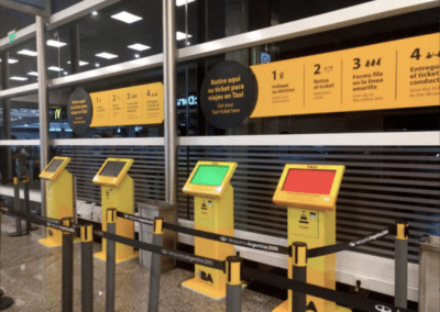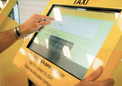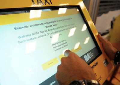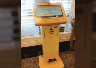Se implementaron tótems que permiten a los usuarios de taxis ingresar su destino, la cantidad de pasajeros y la presencia de equipaje adicional. El sistema calcula la tarifa y emite dos vouchers, uno para el taxista y otro para el pasajero, con el importe a pagar.