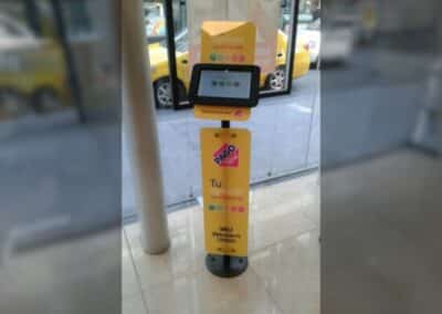 Aplicable a puntos de información, entretenimiento, atención al público en mostrador y satisfacción al cliente.