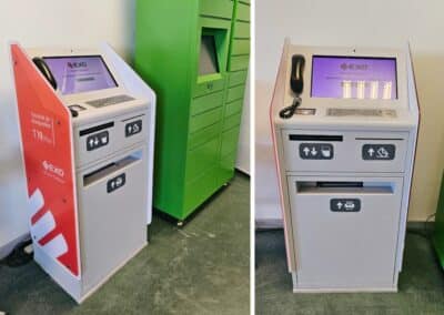 Equipadas con impresora láser, teclado antivandálico, scanner motorizado, cerradura electrónica, teléfono IP, lector biométrico, RFID y diversos sensores, todo integrado en una pantalla táctil de 19 pulgadas.